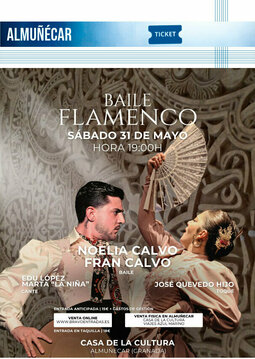 Al son del arte presente BAILE FLAMENCO, otra nueva producción de alta calidad con un lujoso cartel. Con Noelia Calvo y Fran Calvo al baile; Edu López y Marta 'La Niña' al cante; y José Quevedo 'hijo' al toque. Un nuevo espectáculo que pone sobre las tablas la esencia del arte flamenco.